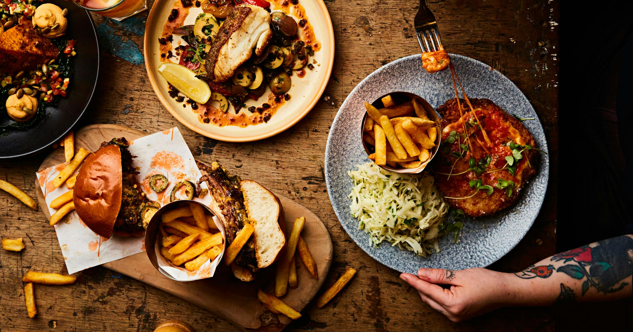 When the weather turns, we lean into comfort. Our new Chicken Parmi brings that classic Aussie pub energy with buttermilk schnitzel, napolitana tomato sauce, mozzarella and parmesan, served with crisp fries. The Smash Cheeseburger is unapologetically indulgent: double patty, melted cheese, caramelised onions and jalapeños. For something lighter, try the Harissa Roasted Butternut Squash with cavolo nero, hummus and salsa, or the Cod Caponata with roasted Mediterranean veg and fried capers.
