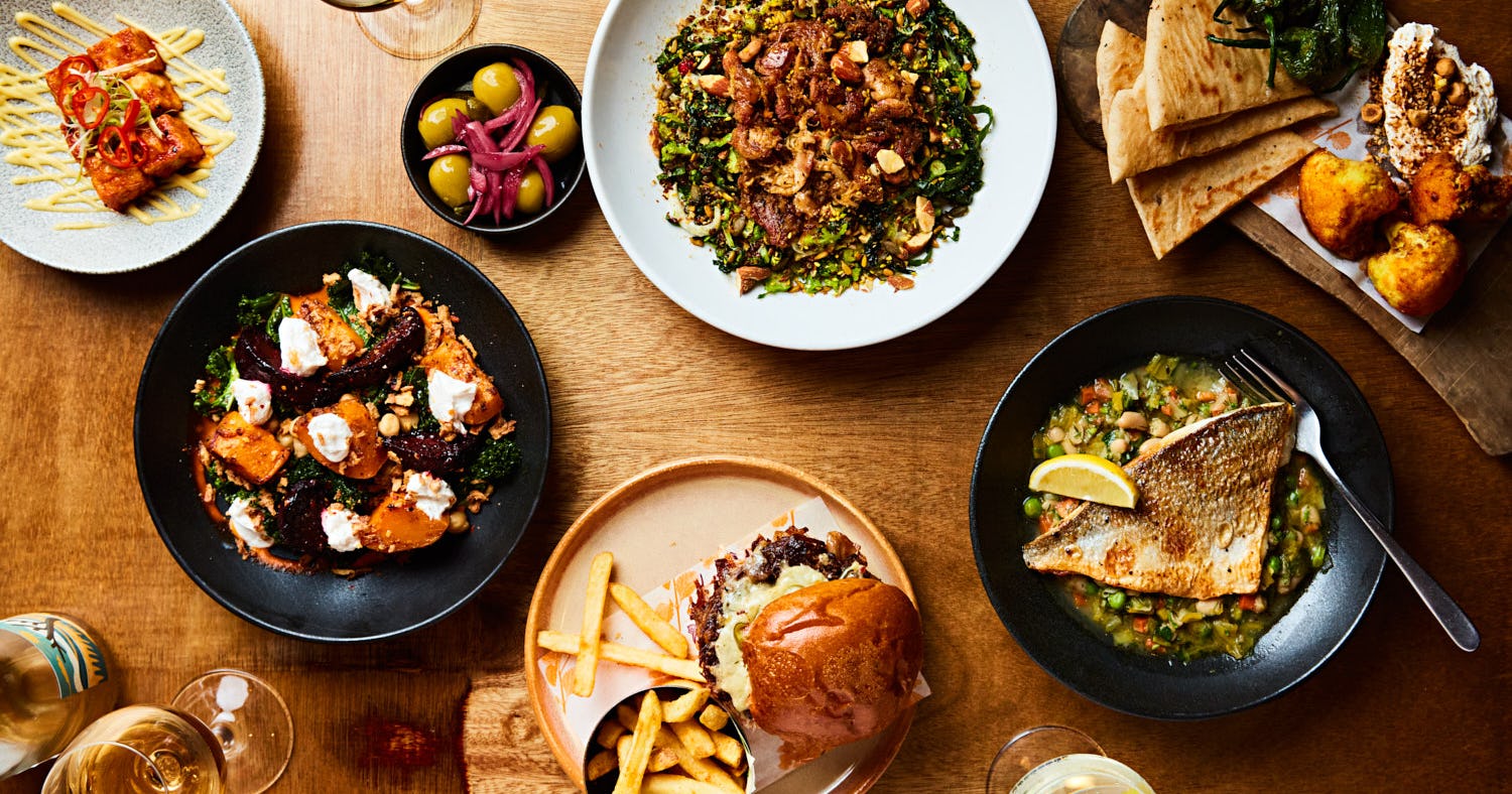 Leek & smoked cheddar croquetas, edamame with sea salt & truffle oil, house labne, dukkha, flatbread, olives & cornichons